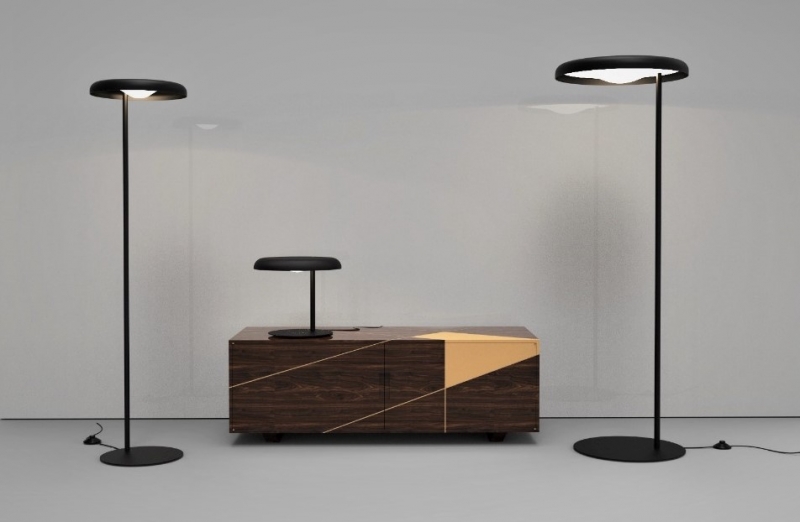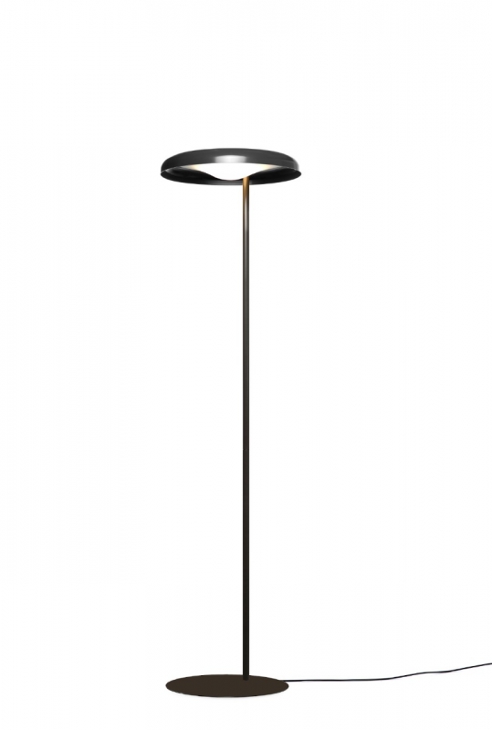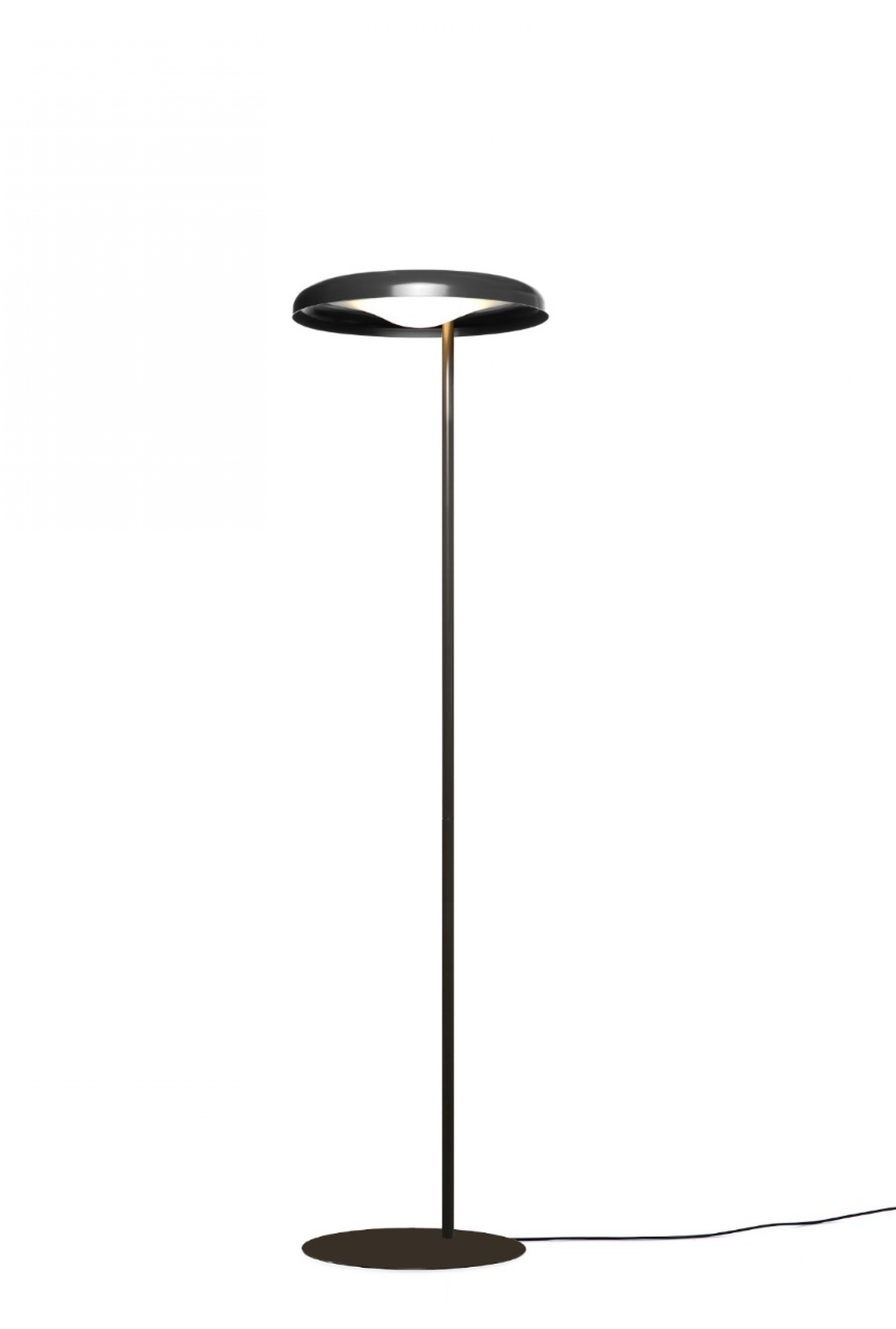 Lámpara de pie. En esta lámpara la luz se expresa en forma de gota usando el lenguaje de la armonía de la naturaleza. La belleza de sus suaves líneas junto con el efecto de la luz generan una calidez perfecta. Difusor de metacrilato esmerilado y cable con interruptor de pie. Luz semi-directa