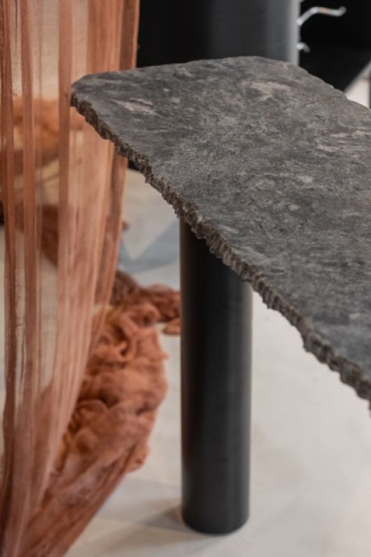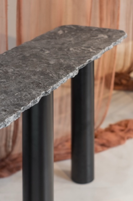 MATERIALIDAD Tapa: Granito Boreal Leather - Base: Caño de hierro negro