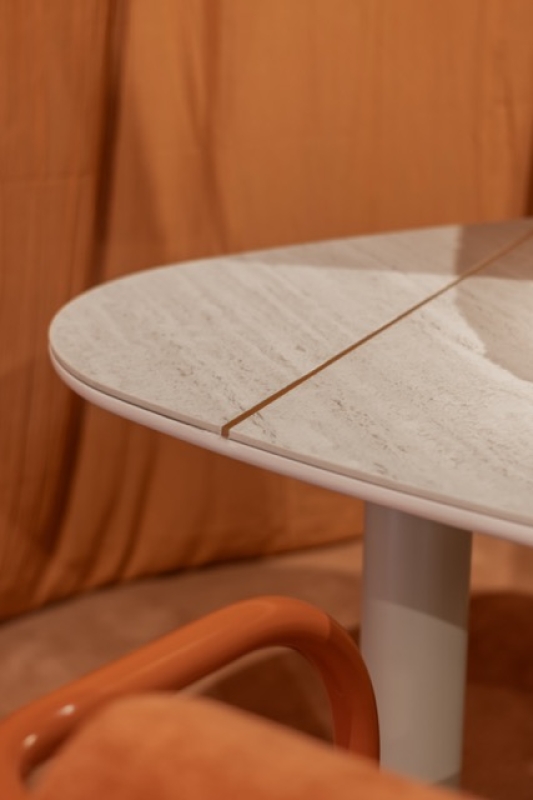 MATERIALIDAD Tapa: Dekton marmóreo - Base: Caño de hierro color crema, detalle en bronce.