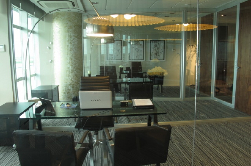 El proyecto de la oficina del buffete de abogados en el edifico de Dollfines Guarani, se materializo con mobiliario de diseño en cuero negro y maderas claras como el nogal emericano. Escritorios con bases en madera laqueda negra del diseñador Alejandro Palandjoglou, tapas de cristal de 20 mm e ilumiandos por la clasica lampara arco. Una paleta de colores sobrios : negro, vison y grises , reslatados por dos columnas doradas, piezas de cristal y obras de arte. Sobre la mesa de reuniones se suspendieron dos luminarias de los diseñadores de weplight, generando un clima calido e intimo.